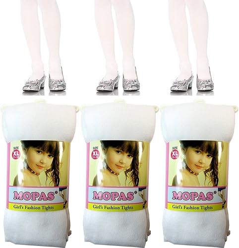 ATB 3 Pair Girls Tights Footed Dance Stockings Pantyhose Ballet XL Size 11-14 White