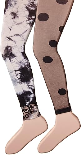 Jefferies Socks Girl's Lace Tie Dye and Dotty Footless Tights 2 Pair Pack