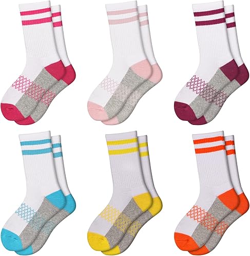 Comfoex Girls Crew Socks Athletic Half Cushioned Long Socks Cotton Calf Socks For Kids 6 Pairs
