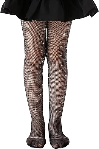 SUREPOCH Girls Fishnet Tights Toddler Sparkle Tights Rhinestone Girls Fishnets Glitter Stockings for Kids Halloween