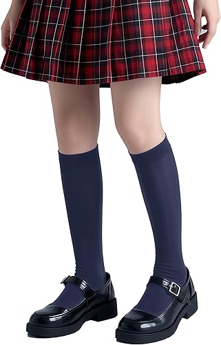 5 Pack Girls Knee High Socks Kids School Uniform Sheer Stockings Dress Long Socks for 7-18 Years Girls