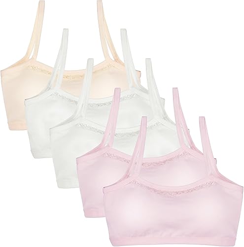 FreeNFond Girls Padded Training Bra for 8-10, CottonTraining Bras for Girls 10-12 with Removable Padding, 5 Pack