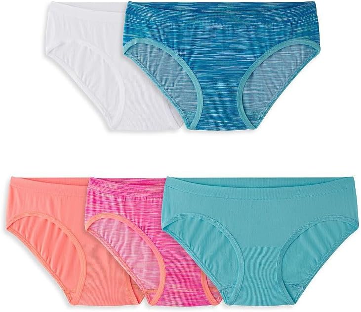 Fruit of the Loom Girls Seamless Underwear Multipack, Brief - 5 Pack - Assorted, 14/16