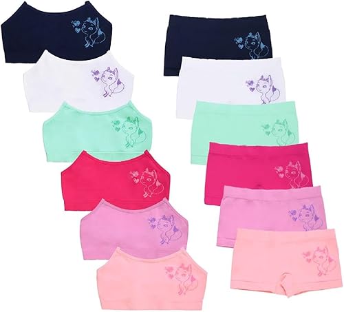 I&S Girl's Pack of 6 Sets of Matching Spaghetti Strap Bras & Seamless BoyShorts or Bikinis (Small, Umbrella Kitty Flowers)