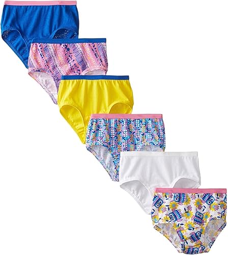 Fruit of the Loom Girls 6 Pack Assorted Cotton Briefs
