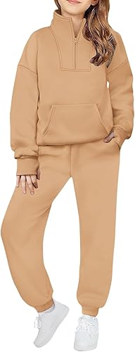 Girls 2 Piece Outfits Sweatsuit Athletic Set Half Zip Lapel Collar Sweatshirt Sweatpant Tracksuit Sets Fleece Winter Clothes