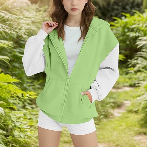 Kids Color Block Full Zip Jacket Winter Long Sleeve Hoodies Coat Warm Hooded Outerwear Sweatshirts for Girls Boys Green