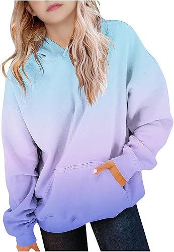 Cute Hoodies for Teen Girls Casual Gradient Preppy Hooded Sweatshirts Oversized Long Sleeve Shirts Clothes for Girls