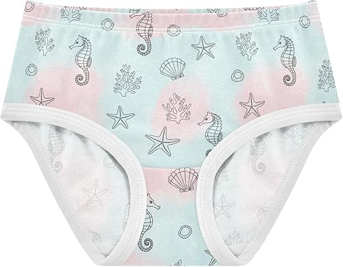 J JOYSAY Seahorse Shells White Girls' Underwear Cotton Comfort Briefs