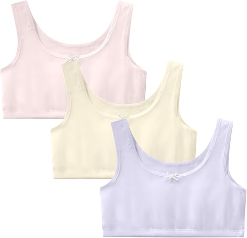 SEAUR Kid Bras for Girl Comfortable Teenager Bralette Lightly Soft Training Bra No Pads Chest Double Lined 3 Packs M-2XL