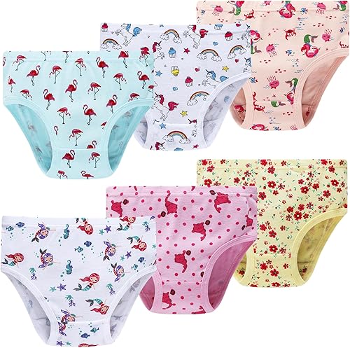 OYOANGLE Girl's 7 Pack Underwear Set Cute Cartoon Brief Underwear Comfortable Panties Set