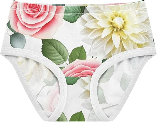 Stylish Toddler Underwear Custom 2t Cotton Cute Panties Girl Pink Roses Cream Dahlias Floral White Undies Kids Briefs