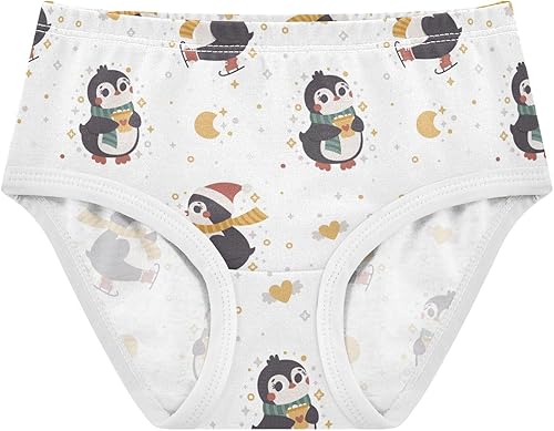 Winter Skating Penguins Girls' Underwear Cotton Christmas Girls Briefs Soft Toddler Underwear 8T