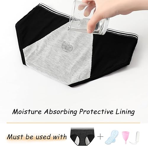 Teen Girls Cotton Menstrual Period Underwear Briefs 6-Pack Breathable Heavy Flow Protective Leak-Proof Panties (Medium, 6Blacks)