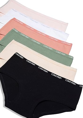 Calvin Klein Girl's Underwear Soft Cotton Hipster Panties, 6-Pack, Blue/Heather/Black, Small US
