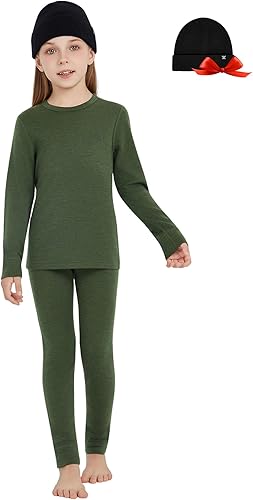 Unisex Kids' 100% Merino Wool Base Layer Sets - Light and Midweight Thermal Underwear Gifts Pack with Wool Beanie