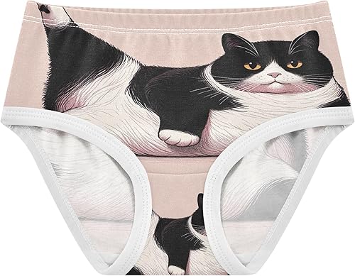 Girls Underwear Toddlers Cotton Panties Little Girl Fun Briefs Girls Undies Lazy Cute Black White Cat