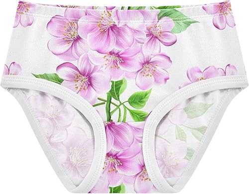 GAIGEO Cotton Girls Underwear Toddlers Pink Flowers Green Leaves White Little Girl Panties Artistic Undies Kids Briefs