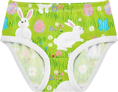 GAIGEO Easter Playful Rabbits Green Girls Underwear Toddler Cotton Cute Panties Girl Florals Underpants Briefs