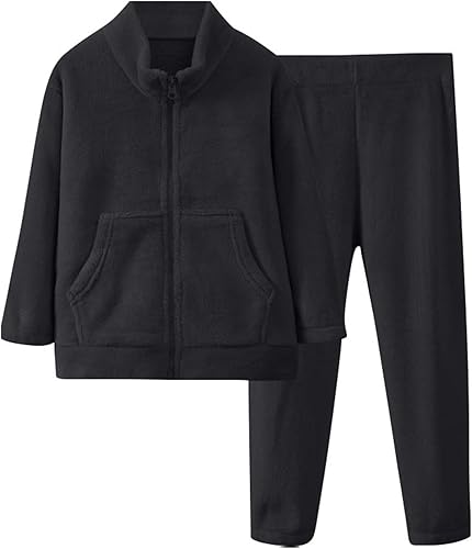 Girls Boys Fuzzy Pants Set Fleece Outfits Winter Flannel Loose Cozy Sweatsuit Full Zip Jacket Sweatshirt & Pants Warm Clothes