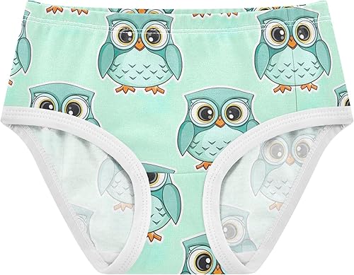 GAIGEO Toddler Underwear Floral Cotton Girl Panties Cute Personalized Briefs Underpants Cute Cartoon Owls Turquoise