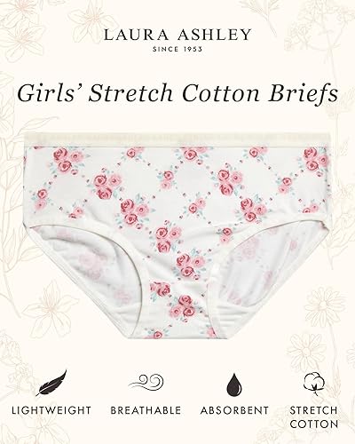Laura Ashley Girls Underwear Briefs - 10 Pack Soft Comfort Stretch Breathable Cotton Underwear Panties for Girls (Sizes:4-12), Size 6X, Mauve Rose/Pink/Mauve/Grey