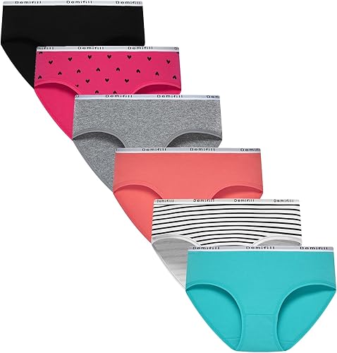 Demifill Teen Girls Underwear Cotton Briefs Soft Panties for Teens Pack of 6 Multipack