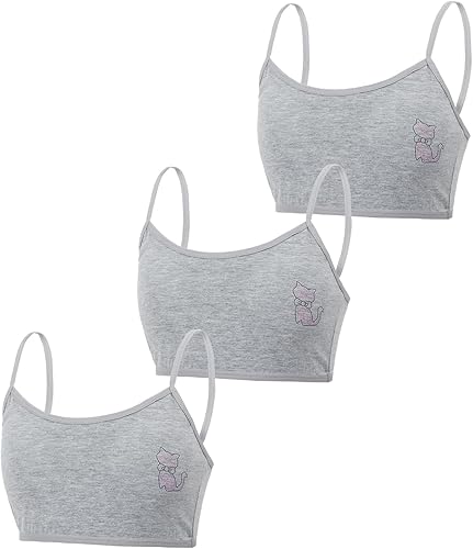3 Pack Cotton Girls Training Bras - Racerback Crop Cami Training Bras for Girls - Girls Seamless Training Sports Bra, White Grey