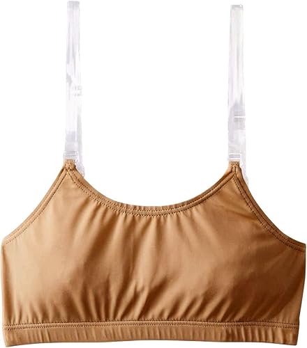 Clementine Big Girls (7-16) Pull-On Bra Detachable Elastic See Through Shoulder Straps, Dark Nude