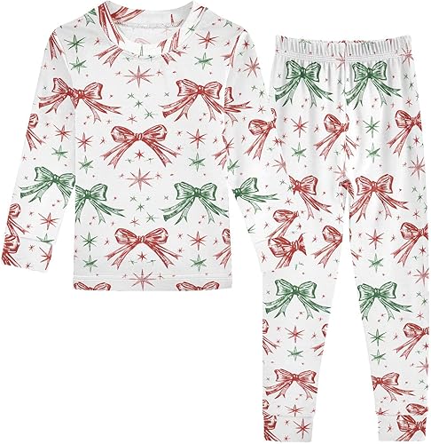 Pajama Sets Long Sleeve Red Green Bows and Stars Soft Comfy Sleepwear 2 Piece PJS 3-8T