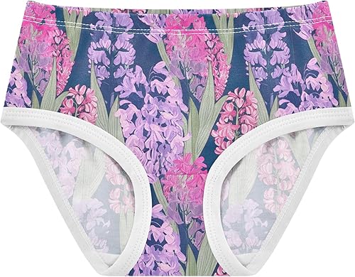 GAIGEO Girls Underwear Toddlers Cotton Little Girl Panties Fun Briefs Underpants Hyacinth Flowers Spring Floral Purple