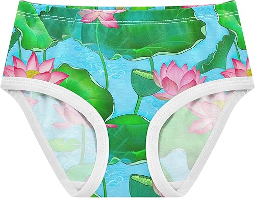 GAIGEO Durable Toddlers Underwear Floral Cotton Girl Panties Cute Vibrant Pink Lotus Green Leaves Kids Undies Briefs