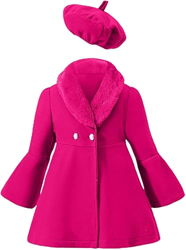 Girls Lined Coats with Hat Button Teen Girls Fleece-Lined Peacoats with Hat Kids Plain Warm Open Front