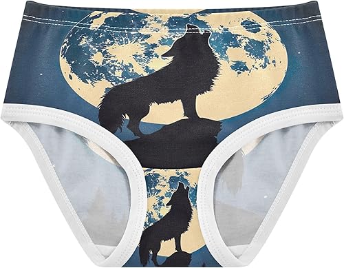 Toddler Girls Underwear Cotton Panties Little Girl Cartoon Briefs Undies Kids Wolf Howling Moon
