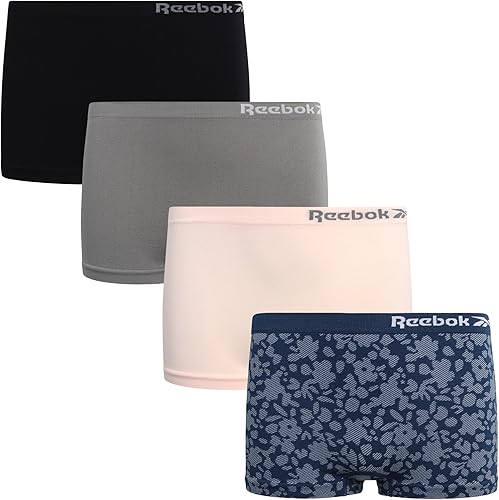 Reebok Girls Boyshorts Underwear - 4 Pack Soft Seamless Girls Panties Boy Shorts - Breathable Panties (6-16)