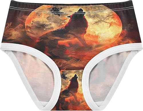 Girls Underwear Toddler Cotton Panties for Girl Cartoon Briefs Undies Kids Howling Wolf Art