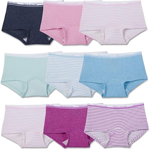 Fruit of the Loom Girl's 9 Pack Boyshort Underwear, 10, Assorted Heathers