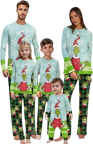 Family Christmas Pajamas Matching Sets Long Sleeve Tops Plaid Pant Holiday Sleepwear Christmas Pajamas for Family