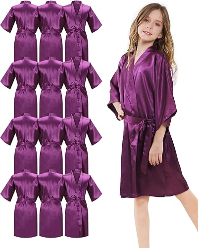 12Pcs Girls Silky Robes Kimono Birthday Kids Spa Party Wedding Bridal Party Flower Girl Robe