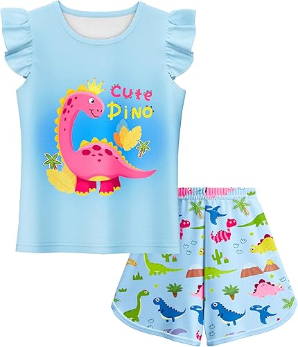 LQSZ Girls Pajamas Flutter Sleeve Toddler Girl Summer Pajamas 2 Piece Pjs Set Sleepwear for Girls 3-10 Years