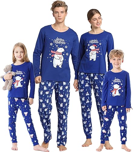 Family Matching Pajama Sets Cute Polar Bear Sleepwear Christmas Clothes Nighty