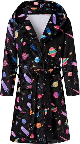 Funnycokid Girls Robe Plush Bathrobe Hooded Kids 4-14 Years