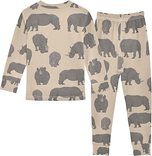 African Animal Rhinos Pajama Sets Long Sleeve Top with Pants Cotton Soft Sleepwear 2 Piece Pjs Set, 6 Years Old