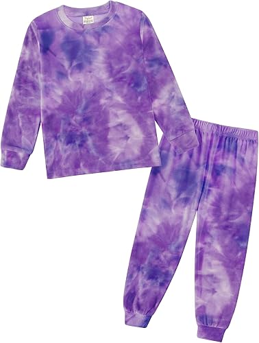 Jimonda Soft Pajamas Kid Boys/Girls Clothes long sleeve 2pc Tee/Pants Pjs Set Toddler tie dye Fluff Sleepwear Outfits 2T-14Y