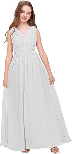 Junior Bridesmaid Dresses for Wedding Chiffon A-Lin Flower Girl Dress Pageant Pleated Dress for Teen Girls Ball Gown