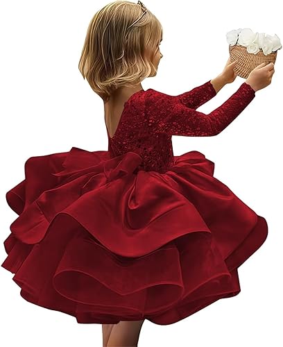Arshiner Flower Girl Dress V Back Lace Long Sleeve Tulle Special Occasion Wedding Party Dresses