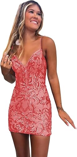 BITALY Sparkly Sequin Homecoming Dresses Short for Teens 2025 Spaghetti Straps Bodycon V Neck Cocktail Dress BI088
