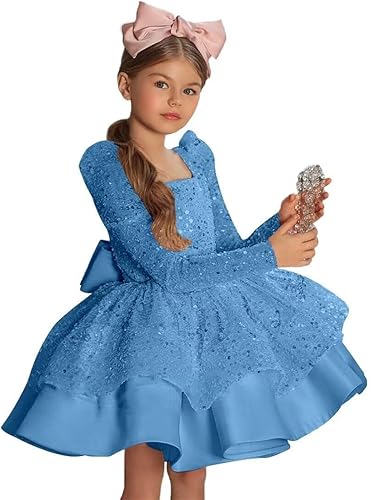 Sparkly Sequin Flower Girl Dress Long Sleeves Pageant Dress Short First Communion Dress with Bow Knot CT05
