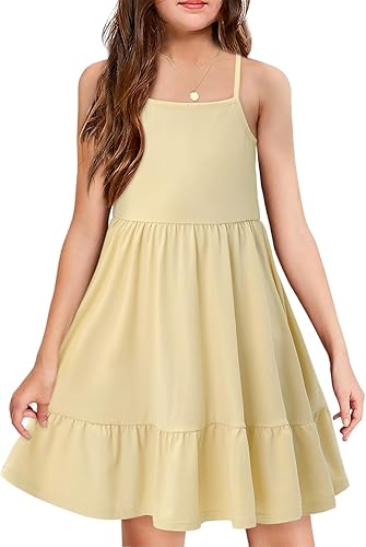 Yoklass Girls Dress Casual Round Neck A Line Ruffle Sleeve Knee Length Dresses 4-13 Years