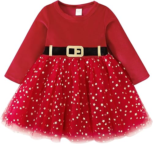 AGQT Baby Girls Christmas Dress Santa Claus Costume Short Sleeve Winter Dress Size 6M-4T